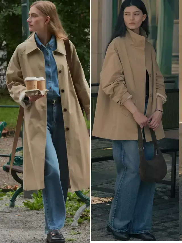 在初春的季节,部分地方天气还没有那么暖和,春风吹来也许还带来一些凉意。这时我们可能会披上一件卡其色风衣外套,内搭蓝色牛仔衬衫和一条牛仔裤,脚上就可以穿上一双经典款式的黑色乐福鞋,就可以使得穿搭者不费力就能打造出复古洋气的造型。